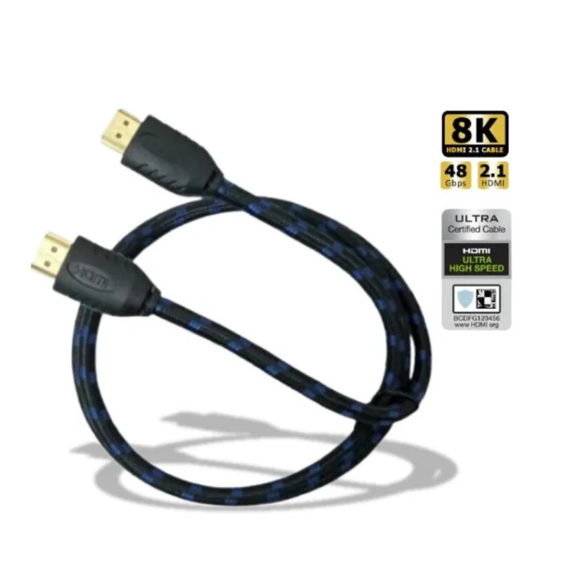 Cable HDMI 2.1 Ultra Label de 2 metros, 8K@60Hz y 4K@120Hz, 48Gbps, mallado y certificado, ideal para video HDR y audio eARC. Presentado en caja exhibidora.