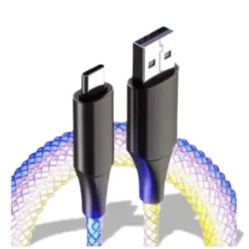 Cable Óptico RGB Tipo C a USB de 1m con luz de 7 colores y alta velocidad de carga.